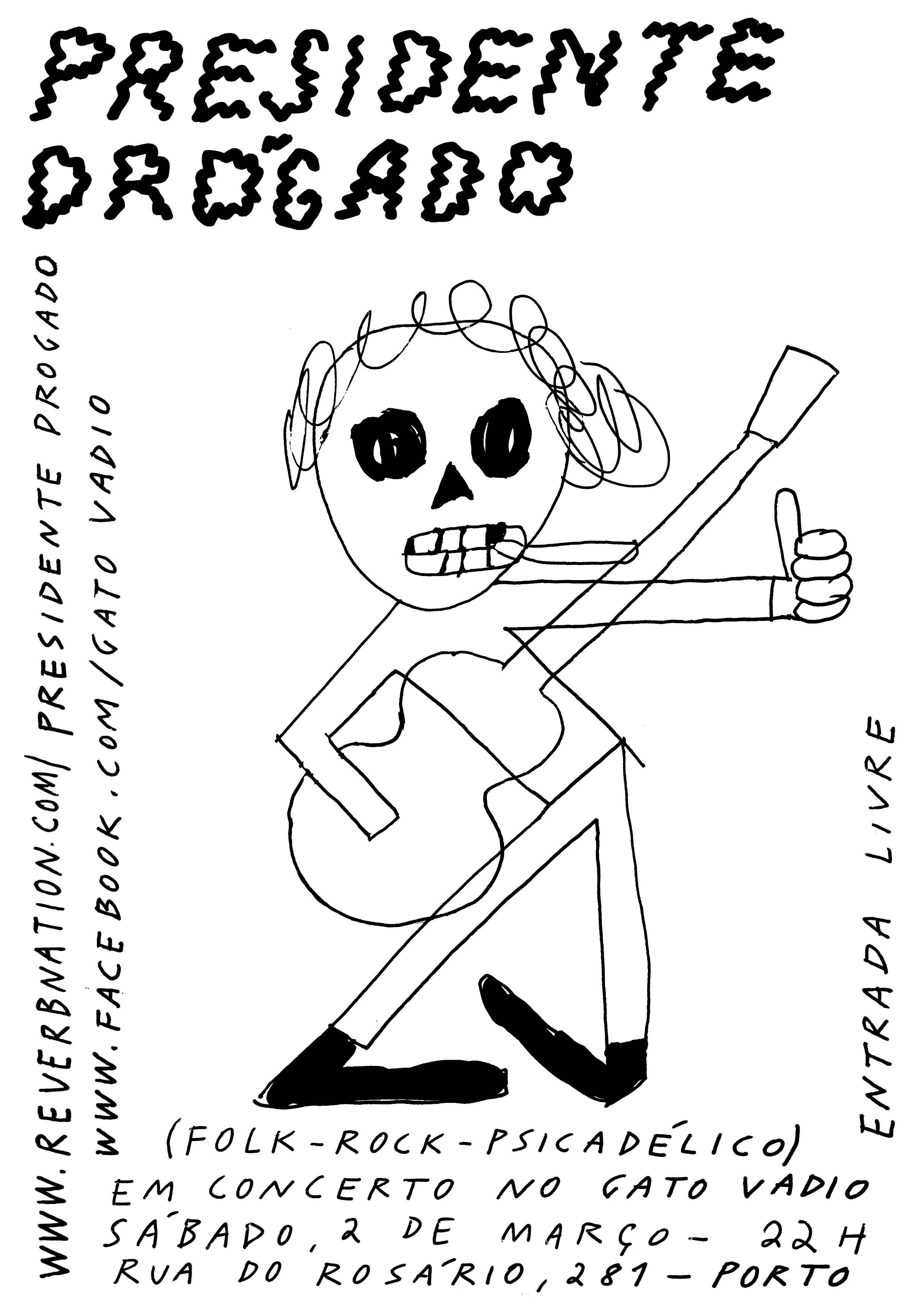 I am playing tonight with Presidente Drógado, who I favor as one of the best singer songwriters in the Portuguese underground music scene. He can provoke the audience who responds to the insults and the lyrics can be very didactic, such as in the big hit “Drogas de A a Z” (Drugs from A to Z). We started playing together in 2007 when I was Nossa Senhora (the Virgin Mary) but later I became Marciana Verde (the Green Martian).